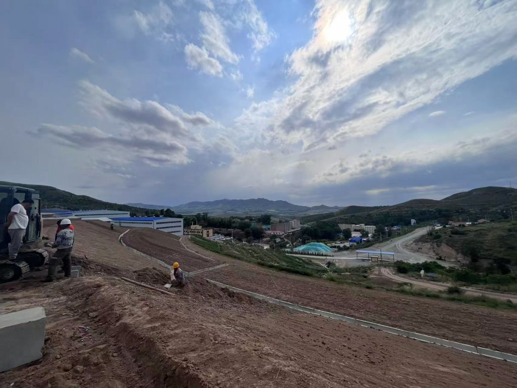 项目概况:赤峰吉隆矿业有限责任公司由地方国营企业撰山子金矿转制更名而成,是一家以黄金采选、销售为主的矿业企业。赤峰吉隆矿业有限责任公司金选厂尾矿库为干排库,库尾式尾矿排放筑坝。目前,该尾矿库已按照批复的《赤峰吉隆矿业有限责任公司金选厂尾矿库闭库项目安全设施设计》完成所有闭库工程建设,进入闭库工程验收阶段。东侧平均标高约715.15m,南侧平均标高约713.0m,西侧平均标高约711.8m,现状尾砂堆积坝体最大高度约为41.8m。尾矿堆积坝平均外坡比不小于1:3,闭库总库容约140.1×104m3,尾矿库等别为四等。最终外坡留设台阶,西侧最底部台阶高度约7.1m,上部其余台阶高度3.1~5.8m不等,台阶平均宽度约4m;库外设截洪沟、拦洪坝等防排洪设施。