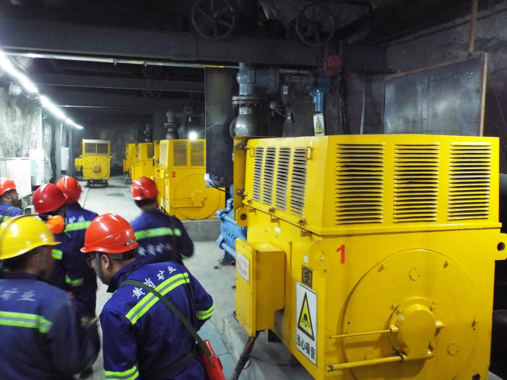 矿区位于内蒙古自治区赤峰市克什克腾旗木希嘎乡,矿区面积6.1433平方公里(两个采区),内蒙古赤峰黄岗铁矿Ⅰ区为地下开采。采用分段凿岩阶段出矿嗣后充填采矿法和浅孔留矿嗣后充填采矿法进行矿体回采,设计生产规模为150万吨/年;采用混合井—辅助斜坡道联合开拓的方式;混合井提升系统为底卸式箕斗配双层罐笼提升,采用多绳塔式摩擦轮提升机;通风采用两翼对角式通风系统,多级机站压抽式通风方式;排水系统采用一段式集中排水的方式;井下运输为采用无轨运输与有轨运输相结合的方式,有轨运输水平为架线式电机车牵引矿车组的方式,无轨运输水平为铲运机配合井下运输卡车运输;Ⅰ区建有1座66kV变电站,两路66kV供电,一路引自热水变电所的热水~黄岗梁铁矿(二线)66kV架空线路,另一路引自66kV黄岗变电所(热黄一线和同铁线),另外一区变电所自备6200kVA发电机组作为第三路回路电源,供特殊情况时使用。